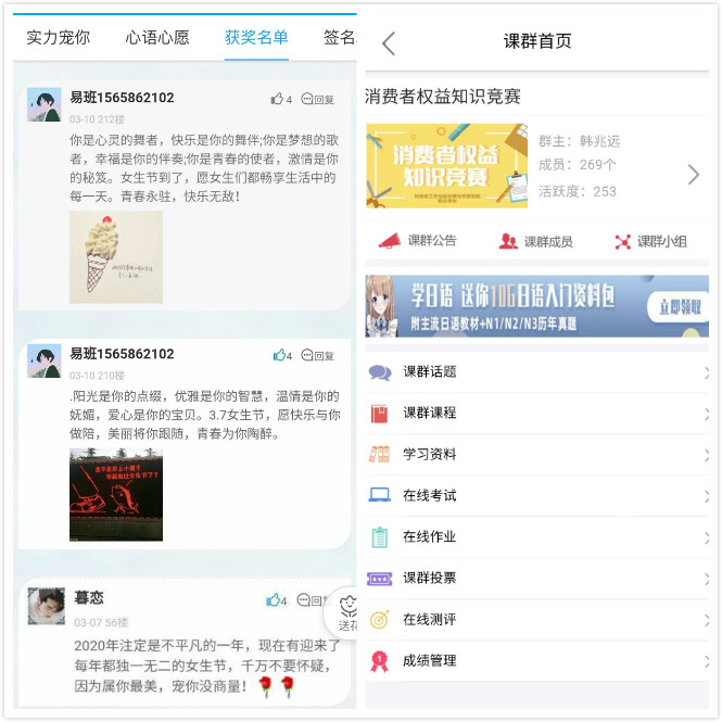 线上开学后,学院团委结合青年学生特点,积极动员,组织开展线上团学活动。易班指导老师杨小晗参加了易班“停课不停学、停课不停教”、易家电台等视频、音频录制,呼吁广大同学关注疫情发展,居家学习,感受人间温情;同时在杨小晗老师指导下,学院学生会、各班级精心策划,开展了内容丰富,形式多样的团学“云活动”,包括青年大学习、“三七”女生节、3.15权益维护知识竞赛等,让同学们学习之余,提升了思想境界,厚植了家国情怀,强化了责任担当。
