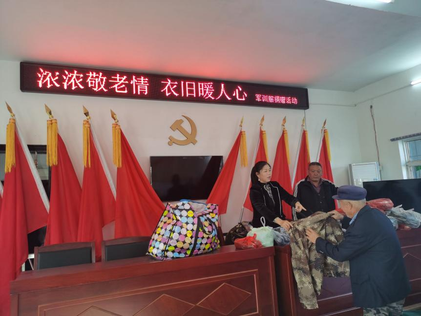 本次军训服捐赠活动在与山后街村党支部书记左培春协商后,以围绕“浓浓敬老情,衣旧暖人心”的主题全面展开,经过前期活动策划、新生军训期间宣传动员以及军训后再次组织线下募捐,共获募捐军训服装240余件,募捐的衣物全部赠送到山后街村的村民手中。