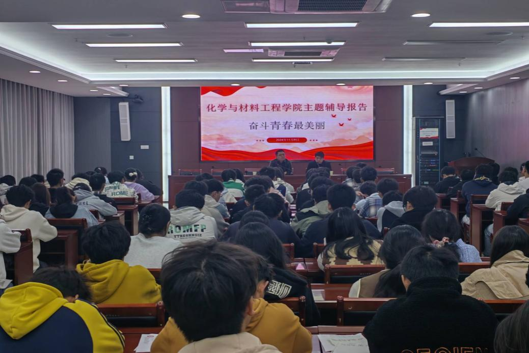 为鼓励新生树立远大理想,以奋斗之姿开启大学新篇章,11月9日,化学与材料工程学院邀请优秀校友、广德市团市委副书记卢志龙在西附楼111报告厅开展主题辅导报告。报告现场,气氛庄重而热烈。卢志龙结合自身求学和工作经历、奋斗历程和人生感悟,生动地诠释了青春奋斗的意义和价值。他鼓励大家保持坚定的理想信念和积极的学习心态,努力提升各方面的能力素养,争取成为一名理想信念坚定、勇于担当使命的新时代青年。此次报告是学院开展新生入学教育工作的重要组成部分,不仅为新生们上了一堂生动的思想教育课,更进一步激发了他们的奋斗热情和进取精神,取得了积极的教育成效。