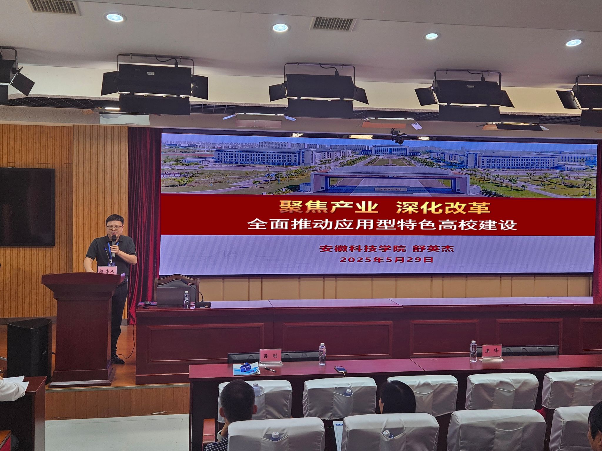 5月28日至29日,安徽省应用型本科高校联盟第十一届年会暨“双特色”建设研讨会在淮南师范学院举行。安徽省教育厅副厅长刘业勋、高教处处长高原出席活动,全省26所应用型本科高校建设单位的分管教育教学负责同志和代表参加了研讨会。