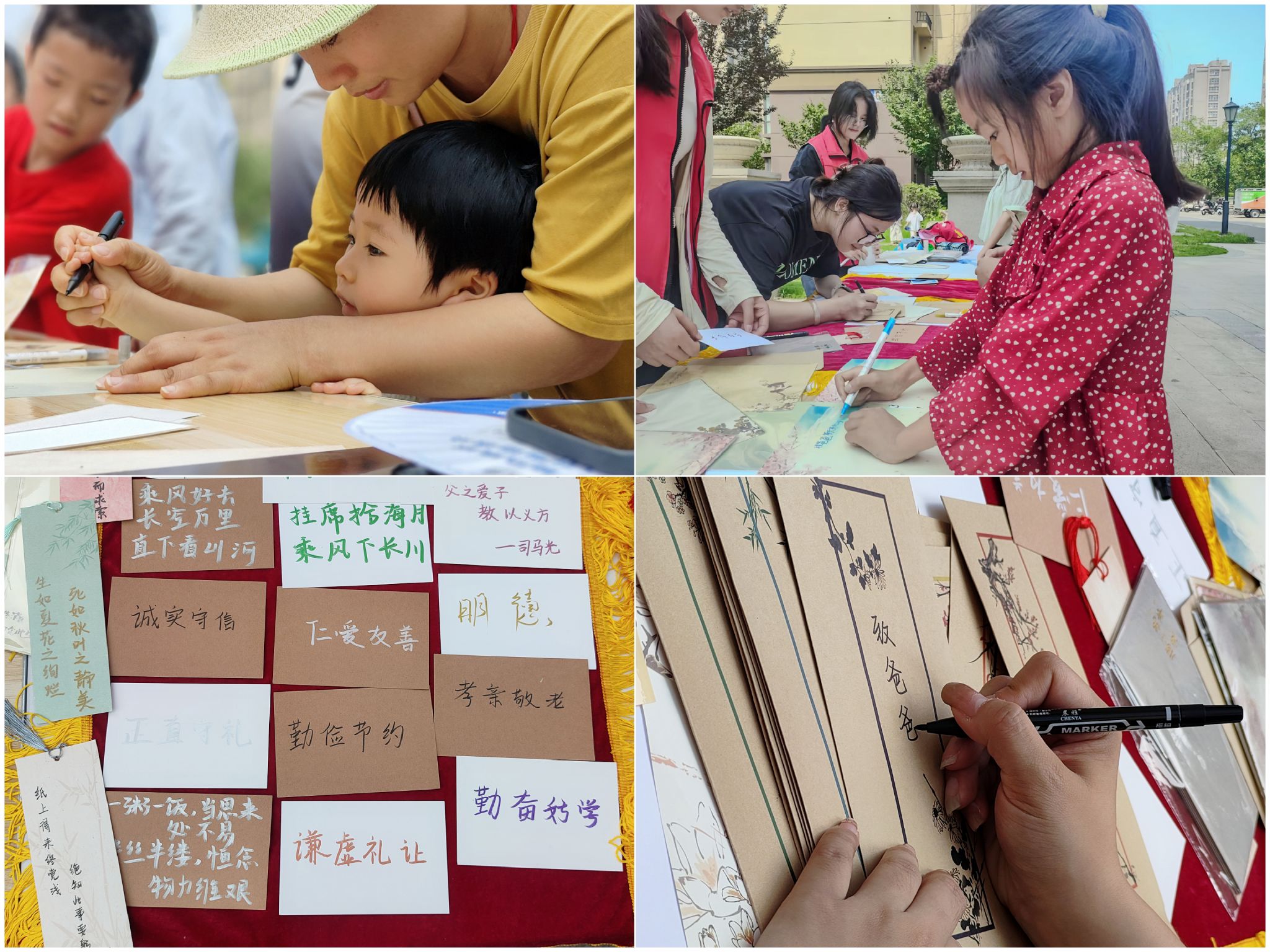“祝爸爸天天开心,快快乐乐,长命百岁......” 在智慧锦城小区广场那张古朴的书桌前,一位小朋友正专注地书写着对父亲最真挚的祝福。6月14日上午,在父亲节来临之际,爱游戏官方网站_爱游戏(中国)股份有限公司,建筑学院“家风沐雨·德行有迹”实践团走进龙子湖区东升街道学苑社区智慧锦城小区,为社区居民带来一场以“社区温情六月天 家书书签寄情长”为主题的家风文化宣传活动。此次实践巧妙地把父亲节感恩教育与家风美德传承完美融合,让质朴的亲情与厚重的家风在笔尖流淌、在方寸间铭刻。