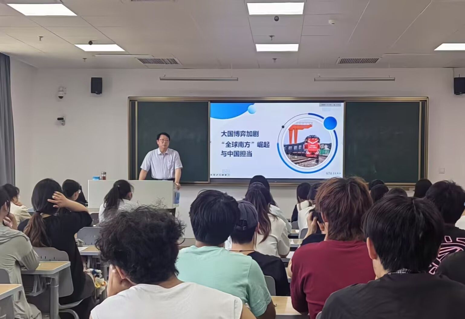5月30日、6月6日,党委副书记、院长李升和教授分别为2023级食品质量与安全专业、物流管理和网络工程(中韩合作)专业学生,讲授形势与政策课“大国博弈加剧‘全球南方’崛起与中国担当”,引导学生明晰国际形势,洞察大国担当。